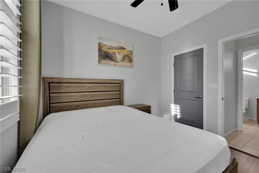 Energy-efficient home featuring solar panels to help keep power costs low ready to move in. This beautifully upgraded 2-story property offers 4 spacious bedrooms plus a large den?perfect as a 5th bedroom, home office, or flex space. Enjoy a bright, open layout with no carpet, upgraded flooring, window blinds and shutters, new ceiling fans, and abundant natural light throughout. The kitchen is designed for both function and style, featuring granite countertops, a center island, breakfast bar, recessed lighting, and a pantry. All appliances are included?refrigerator, stove, microwave, dishwasher, washer, and dryer. A recently installed garage door adds even more value. Step outside to a low-maintenance backyard with a covered patio, synthetic grass, and desert landscaping with drip irrigation?perfect for relaxing or entertaining. Located in a low HOA community near schools, parks, shopping, and easy freeway access, this property is ideal for both homeowners and investors.