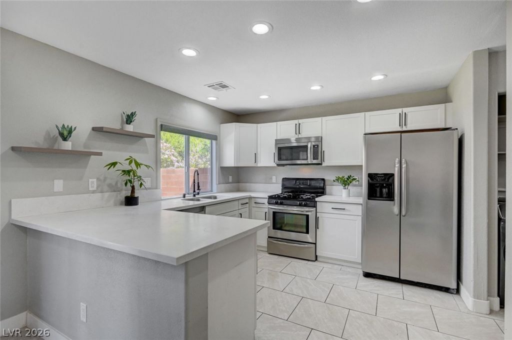 In the heart of Henderson this home features an open layout vaulted ceilings with an updated kitchen and bathrooms. Upstairs the primary bedroom has a sitting area which flows into the bedroom area. The back yard is large where a pool could easily fit. Currently with artificial grass for low maintenance and a great look. If you are looking for big bedroom without having to sacrifice the living area. This is the home for you.