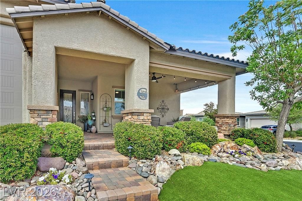 Beautifully upgraded Henderson home at 436 Lake Run Ave! This open-concept floorplan features manufactured hardwood flooring, 6 baseboards, and custom Levelor shades throughout. The kitchen is a showstopper with GE Café appliances, 5-burner double oven, Zephyr hood, Thermador drawer microwave, Carrara-style quartz island, black cabinetry, and full subway tile backsplash. Spacious primary suite fits a Cal-King and offers a luxurious bath with dual showerheads, bench, and large walk-in closet with built-ins. Private guest suite plus office with custom track lighting. Laundry room includes ample cabinetry, quartz counters, and utility sink. Enjoy a fully landscaped backyard with artificial turf, pavers, drought-tolerant landscaping, and custom water feature. Stone-wrapped fireplace, front columns, and hardwired landscape lighting. Built in 2019 with smart home features including Ring doorbell and ADT wiring. Move-in ready, highly desirable Henderson location near parks and shopping.