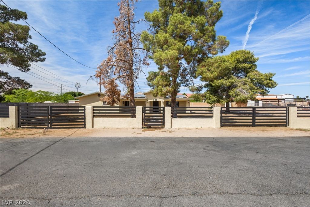 RANCH STYLE WITH HORSES PERMITTED !! In a cul-de-sac, fully renovated, enjoyable front porch with ceiling fans, new modern fencing and gates offering luxury, privacy and security, large living room, formal dinning room, spacious kitchen, two complete principal bedrooms with their own bathroom each one, all permitted by Clark County. Highly upgraded, new bathrooms with lot of upgrades including stone walls and new custom cabinets, Two new A/C unit, new Water heater, double-panel windows, new stucco and paint in all interior and exterior. This property counts with its own PRIVATE WATER WELL, unlimited water without monthly water bills ($20 year), Septic tank without sewage monthly bills, Water filter, also Solar panels with very low electricity monthly bills offering long-term savings !! Property now more than 2k SF in a half an Acre lot, all legal! BIG POTENCIAL, AND LOW PRICE, READY T MOVE IN !!