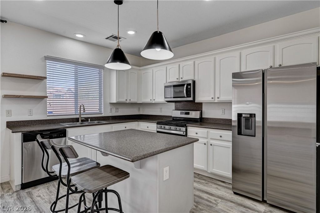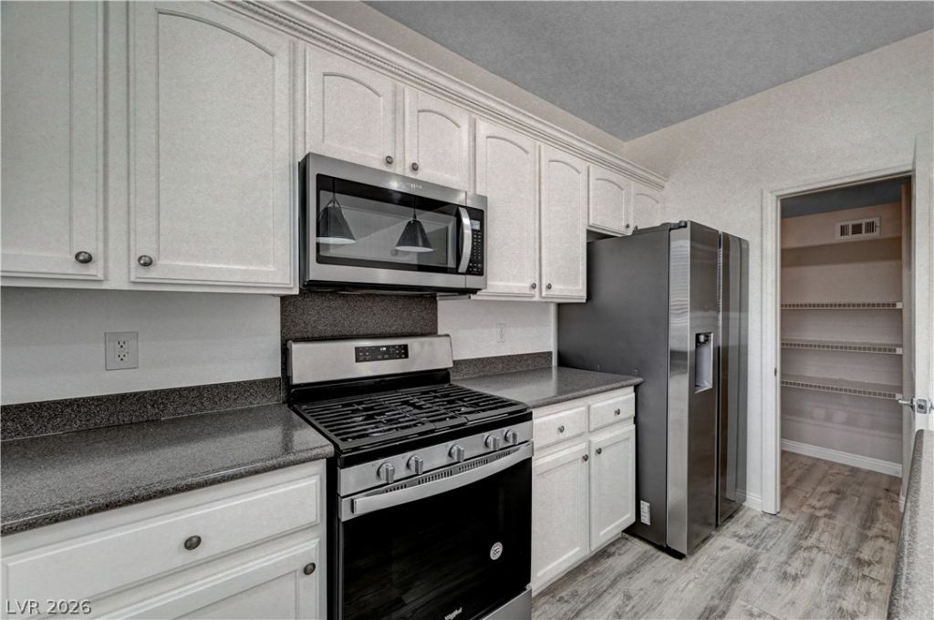 Beautiful, included solar-powered 3-bedroom + loft home located in the desirable Southwest Mountain's Edge community, featuring access to a refreshing community pool! This home offers an open and functional layout with a spacious kitchen that includes a large island, solid granite countertops, recessed lighting, and a walk-in pantry. All appliances are included?refrigerator with ice maker, plus washer and dryer for added convenience. The inviting family room features a ceiling fan for comfort, while all bedrooms and the versatile loft are situated upstairs?perfect for a home office, media space, or play area. The primary suite includes a ceiling fan, built-in entertainment center, and a well-appointed bathroom with dual vanity sinks, a separate shower, a relaxing Roman tub, and a generous 11x6 walk-in closet. Enjoy energy savings with solar, great community amenities, and a well-designed living space in one of the Southwest's most popular neighborhoods!